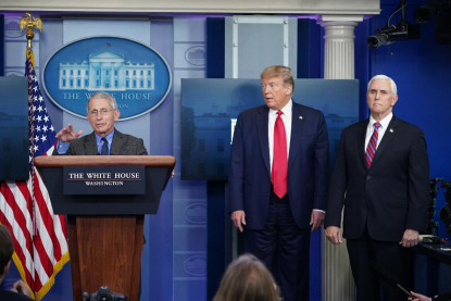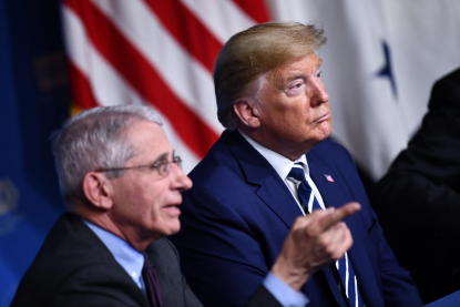 Director of the National Institute of Allergy and Infectious Diseases Anthony Fauci speaks as US President Donald Trump listens during the daily briefing on the coronavirus in the Brady Briefing Room at the White House on April 13, 2020, in Washington ( AFP / MANDEL NGAN)