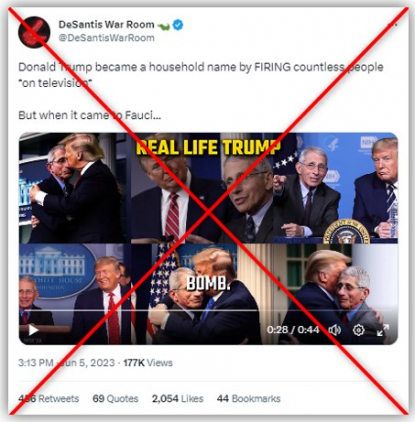"Donald Trump became a household name by FIRING countless people on television," the DeSantis rapid response team wrote in a June 5, 2023 tweet sharing the video. "But when it came to Fauci..."